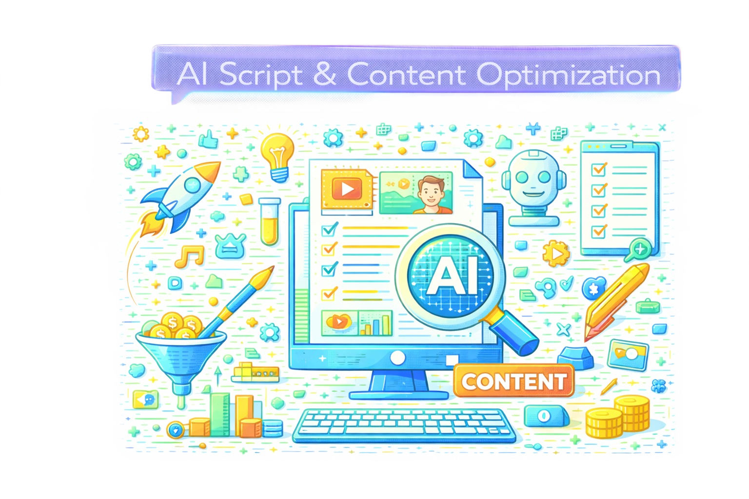 AI-assisted script refinement and content structure to improve watch time and engagement.
